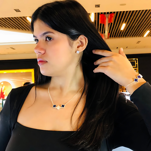 Collar Trébol Van C Azul - Plata 925