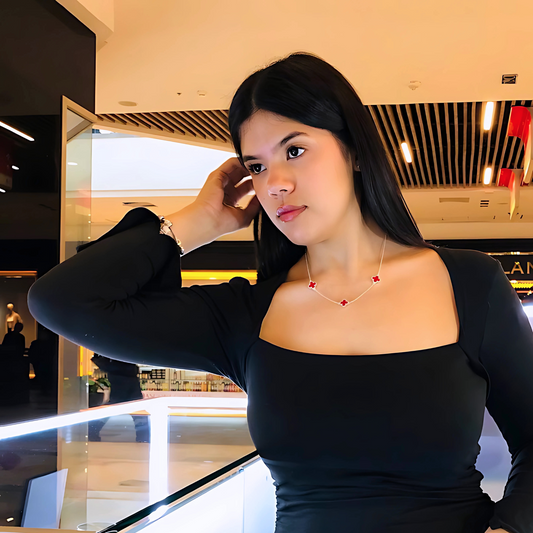 Collar Trébol Van C Rojo - Plata 925