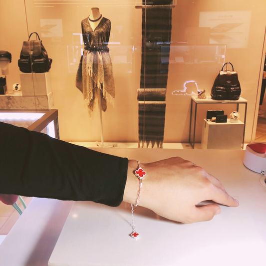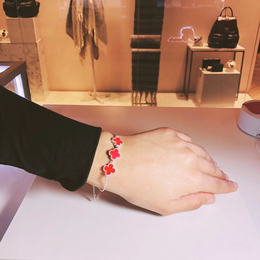 Pulsera Trébol Van C Rojo - Plata 925